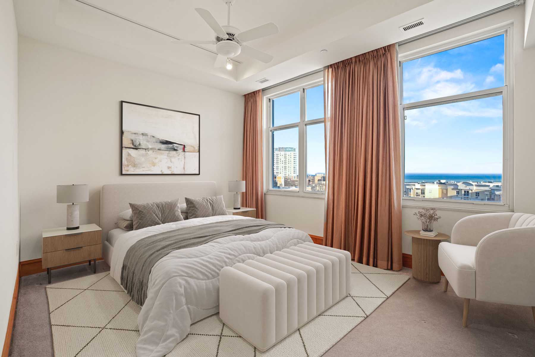 Located in the East Town neighborhood is this 2 bedroom, 2 bathroom unit at the sought after Breakwater! With over 2,000 sq. ft. of living space, the unit offers a gourmet kitchen w/custom cabinets, granite counters, stainless appliances and 2-tier breakfast bar. Spacious living room w/GFP and walls of windows which gives the unit an abundance of natural light! Oversized private deck w/expansive lake views is perfect for morning coffee or entertaining guests! Primary bedroom features a walk-in closet, and primary bathroom w/dual vanities, soaking tub and tiled walk-in shower. In-unit laundry. 2 heated indoor parking spaces and 2 storage units included. Close to Downtown, lakefront parks, dining, night life and cultural attractions which makes this unit upscale living at its best!
